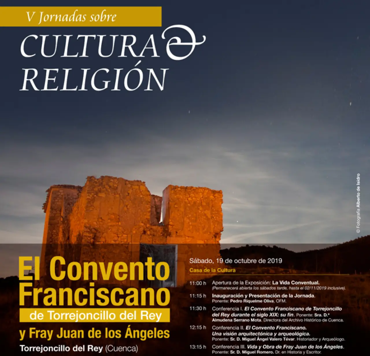El fin de semana del 19 y 20 de octubre se celebra la V Jornada sobre Cultura y Religión en la localidad de Torrejoncillo del Rey que en esta ocasión versará sobre el Convento Franciscano que hubo en el municipio en el siglo XIX y sobre la vida y obra de la figura de Fray Juan de los Ángeles.