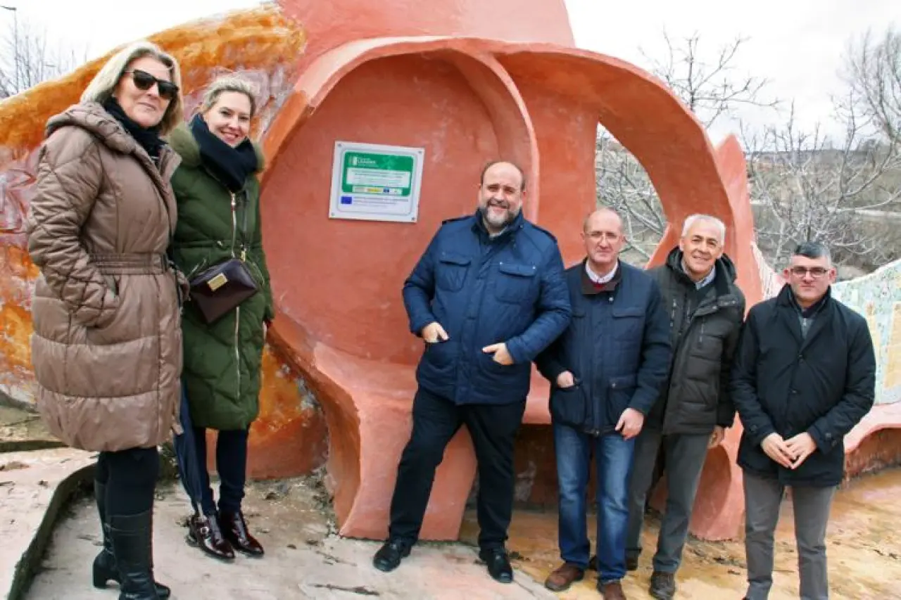 Al acto asistieron también el alcalde de la localidad, Jose Luis Regacho, la presidenta de las Juntas Generales de Bizkaia, Ana Otadui Biteri, el vicepresidente primero de Castilla-La Mancha, José Luis Martínez Guijarro, y el delegado de la Junta en Cuenca, Ángel Tomás Godoy, además de otros representantes autonómicos y alcaldes de los municipios cercanos. Todos recorrieron la localidad y su paseo escultórico y etnobotánico, una actuación de acondicionamiento artístico de espacios urbanos cuya primera fase también ha contado con una ayuda de la Convocatoria LEADER 2014/2020, dentro de la Medida 19 del Programa de Desarrollo Rural (PDR) de Castilla La Mancha 2014/2020 financiada por el FEADER (Fondo Europeo Agrícola de Desarrollo Rural), la Administración General del estado y la Junta de Comunidades de Castilla La Mancha.